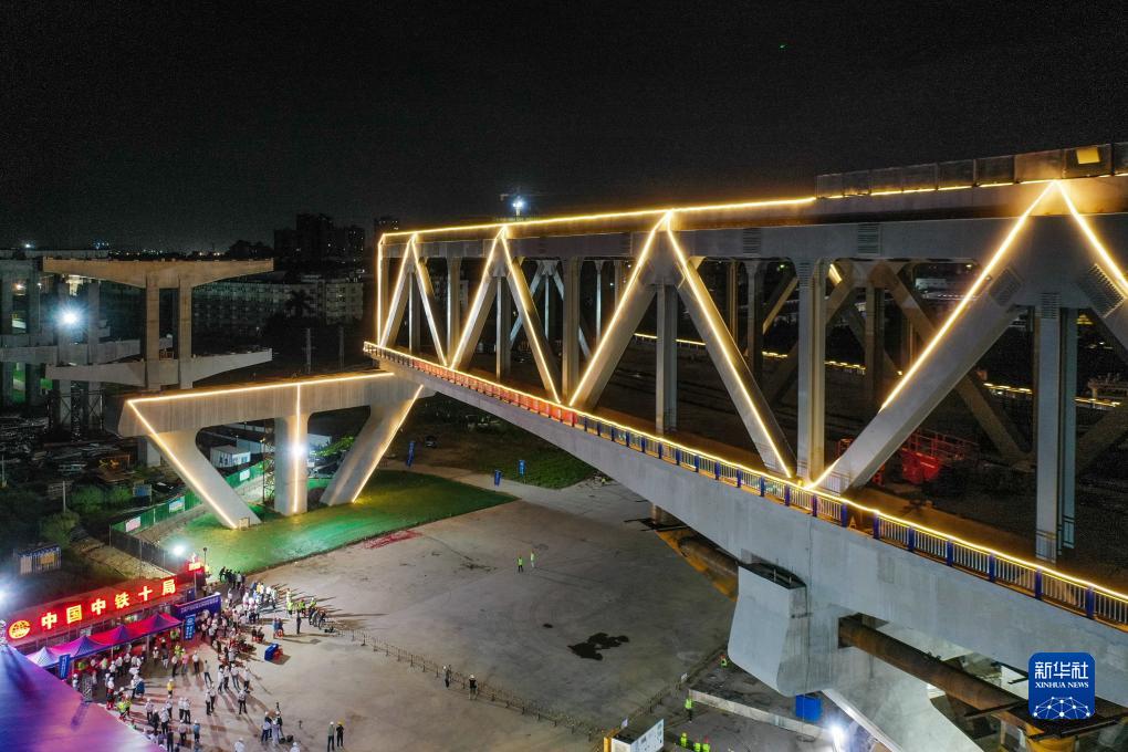 當(dāng)日凌晨,中鐵十局承建的莞(東莞)番(番禺)高速上跨廣深鐵路主橋完成逆時(shí)針81.1°轉(zhuǎn)體,填補(bǔ)了國內(nèi)雙層公路鋼砼結(jié)合橋轉(zhuǎn)體施工跨越運(yùn)營鐵路的空白。