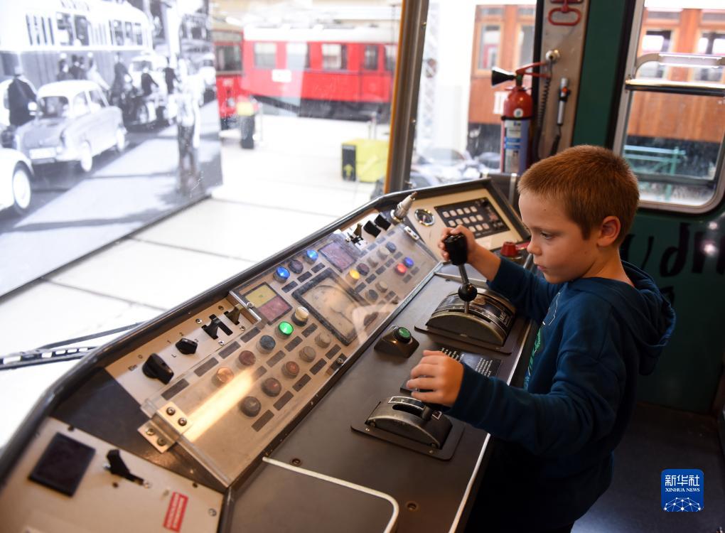 8月30日,在奧地利維也納交通博物館,一名男孩體驗地鐵列車的駕駛室。