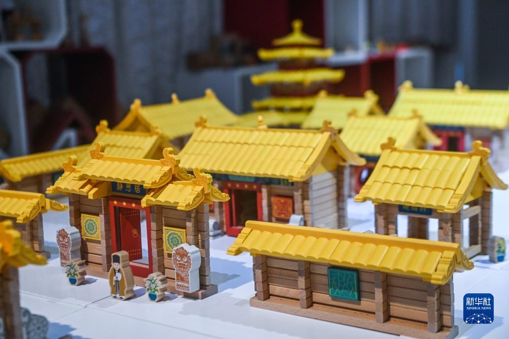 8月31日,位于云和縣的浙江和信玩具集團有限公司展廳內(nèi)展示著國潮榫卯積木玩具。