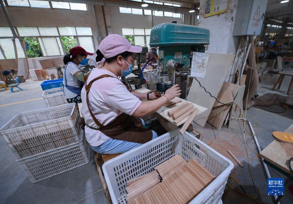 8月31日,在位于云和縣的浙江金馬工藝品有限公司的車(chē)間內(nèi),工人在加工木制玩具。