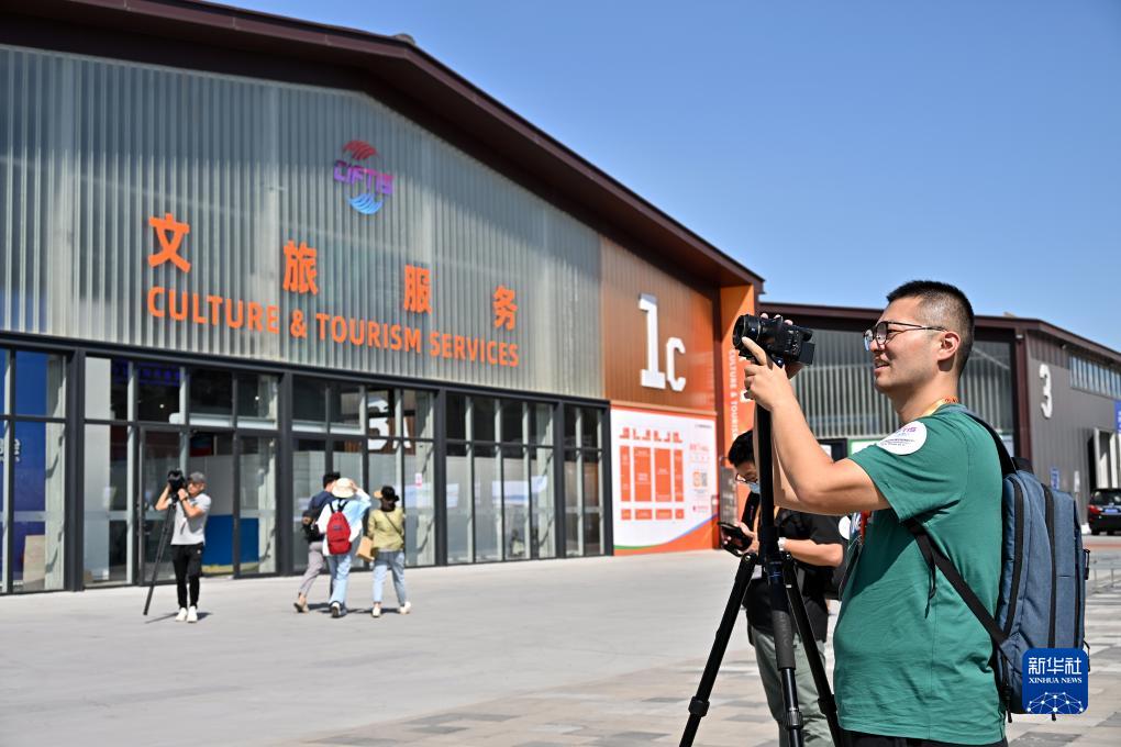 8月31日,參加探營活動的媒體記者在服貿會首鋼園區內拍攝。