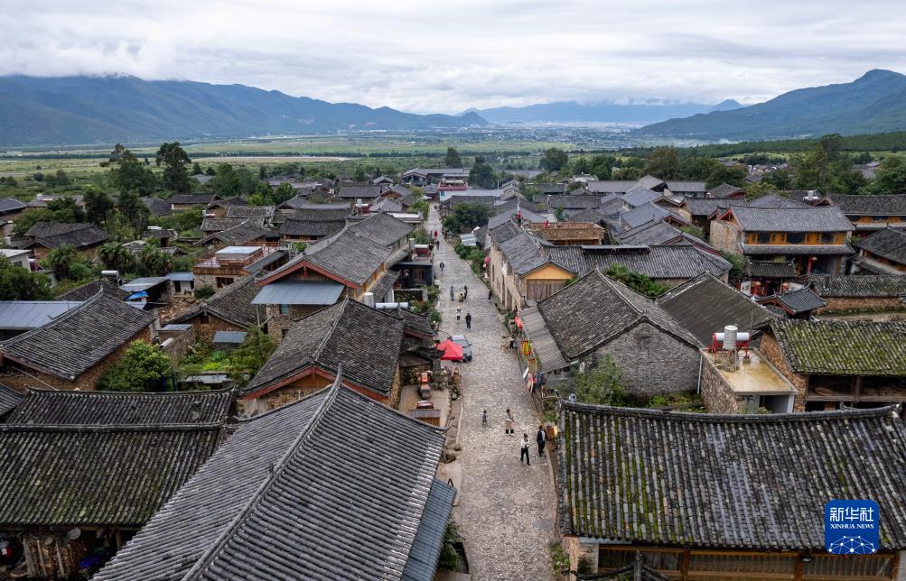 游客在麗江市玉龍納西族自治縣白沙鎮玉湖村觀光游覽(8月28日攝,無人機照片)。