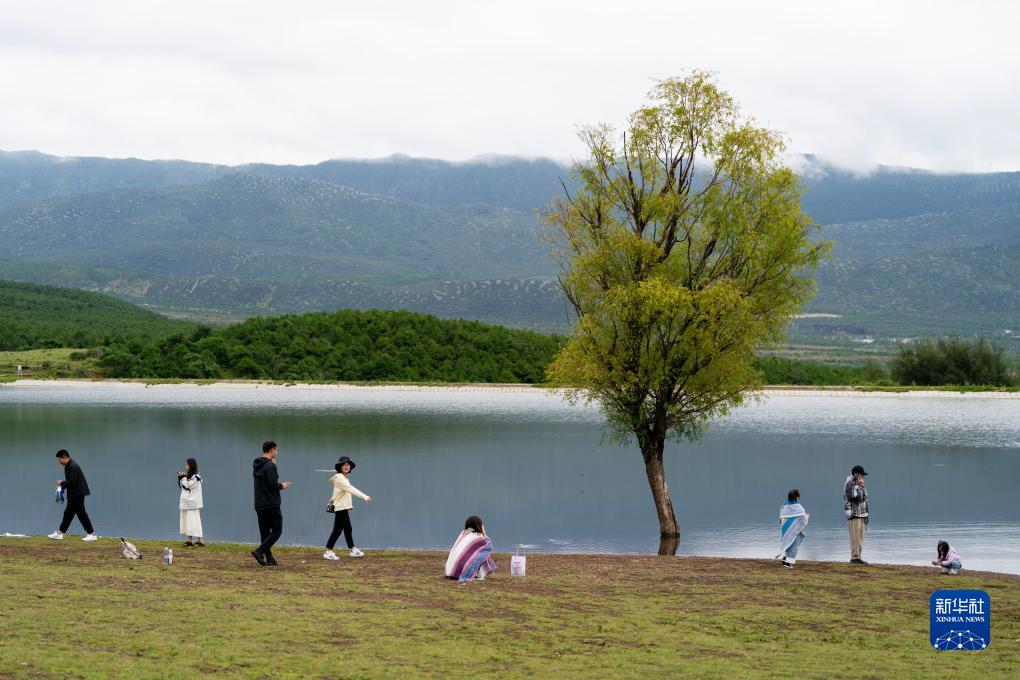 游客在麗江市玉龍納西族自治縣白沙鎮(zhèn)玉湖村龍女湖邊休閑游玩(8月28日攝)。