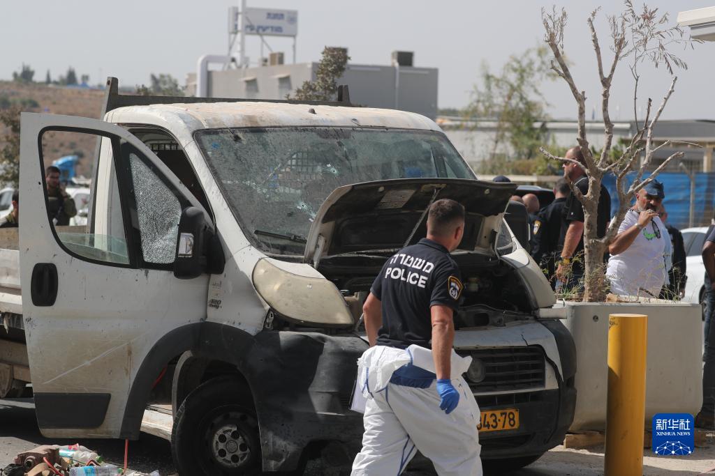 8月31日,以色列警方和安全人員在以色列中部城市莫迪因附近的襲擊事件現場開展工作。