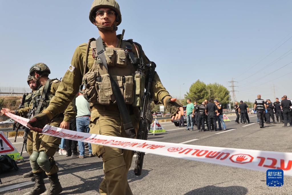 8月31日,以色列士兵在以色列中部城市莫迪因附近的襲擊事件現(xiàn)場警戒。