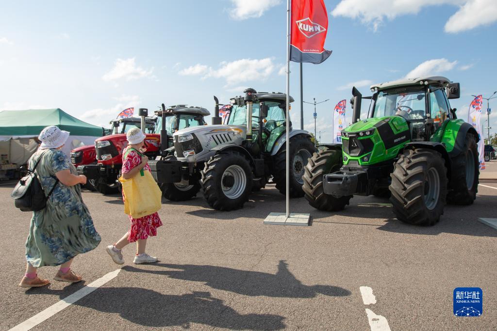 8月31日,參觀者在俄羅斯圣彼得堡第32屆國際農業工業展上參觀農業設備。