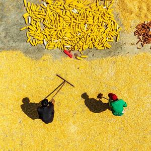 初秋時節,各地農民搶抓晴好天氣,加緊收獲、晾曬農作物。