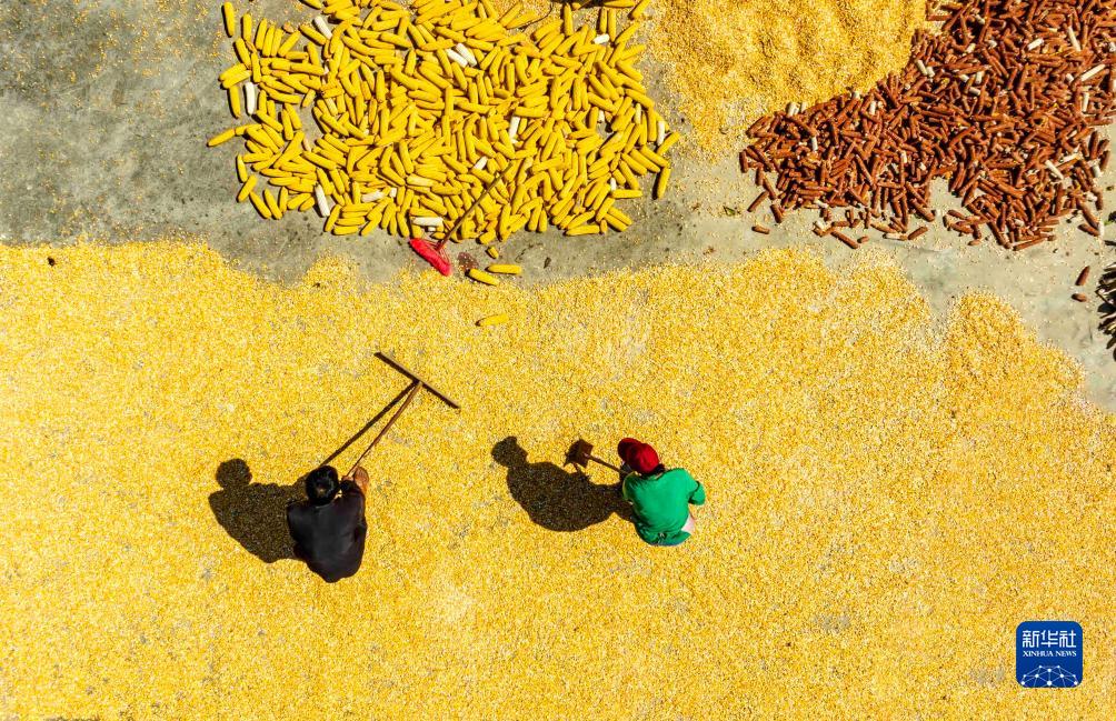 初秋時節,各地農民搶抓晴好天氣,加緊收獲、晾曬農作物。