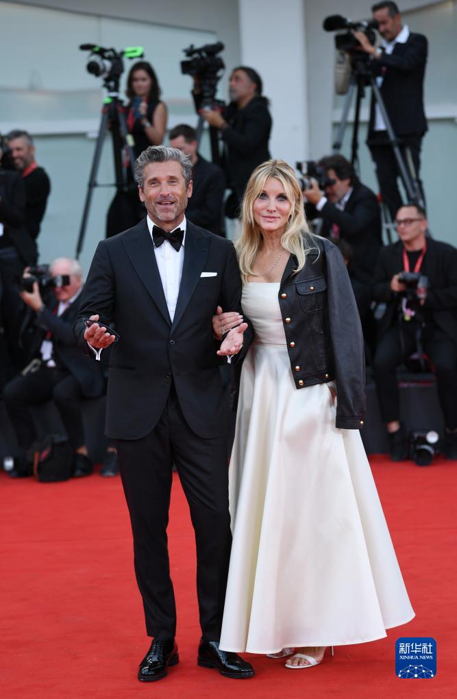 8月31日,在意大利威尼斯,電影《法拉利》演員帕特里克·登普西攜妻子亮相首映式紅毯。