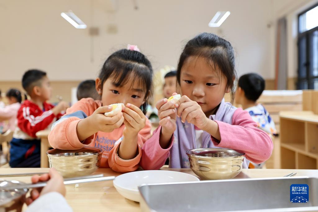 9月1日,在云南省昆明市西山區(qū)前衛(wèi)幼兒園,小朋友們在吃早餐。