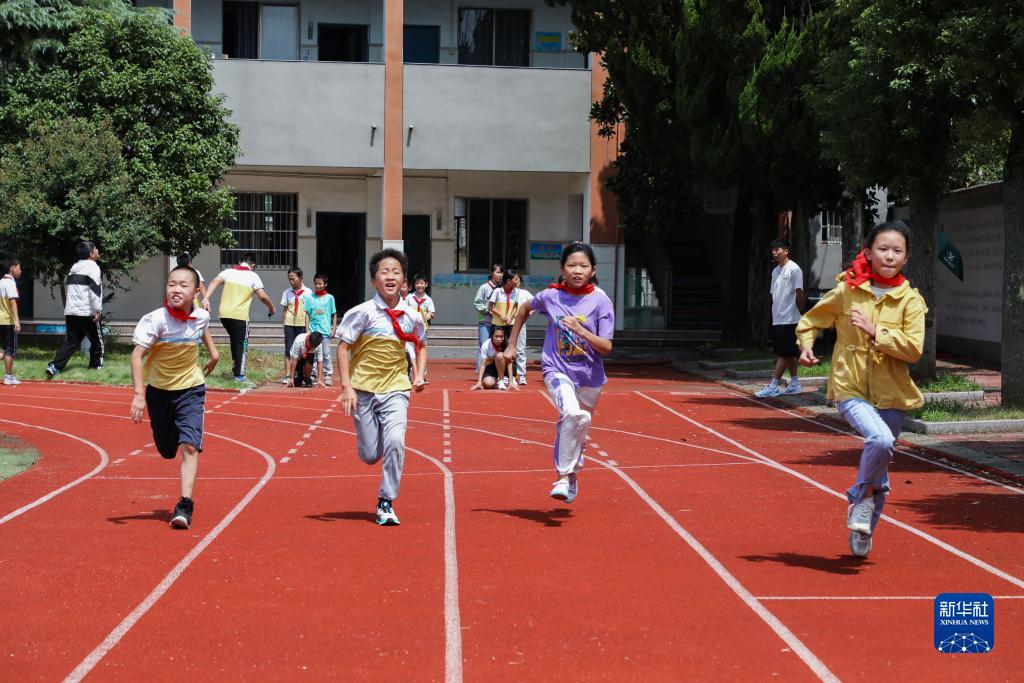 9月1日,浙江省湖州市吳興區東林鎮東林二小的學生們在“開學第一課”上參加短跑比賽。