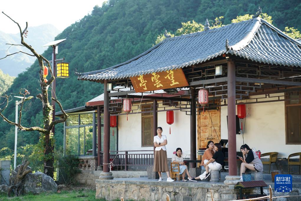 8月31日,游客在旬陽市構(gòu)元鎮(zhèn)羊山村一家民宿內(nèi)休閑游玩。