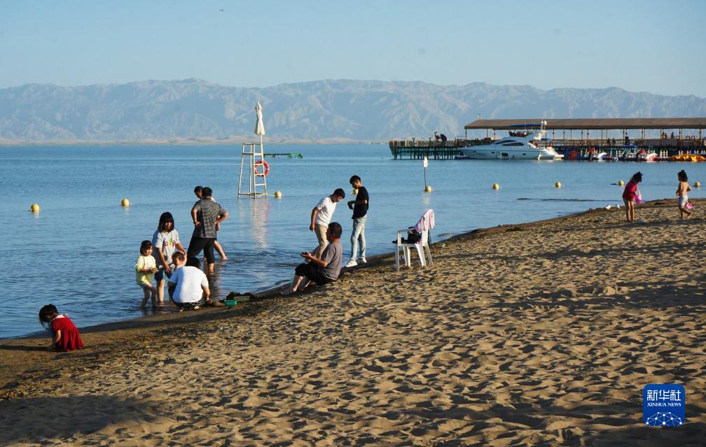 8月31日,游客在新疆博斯騰湖大河口景區游玩。