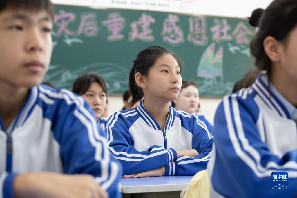 9月1日,在哈爾濱市延壽縣第四中學,學生在開學第一課上聽講。