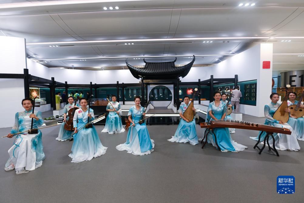 9月1日,演員在主媒體中心文化展廳內進行傳統文化展示。