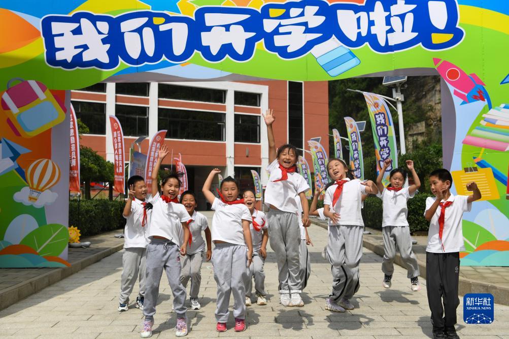 9月1日,在北京市房山區(qū)霞云嶺鄉(xiāng)霞云嶺中心小學(xué),幾位學(xué)生在修繕一新的校舍前合影留念。