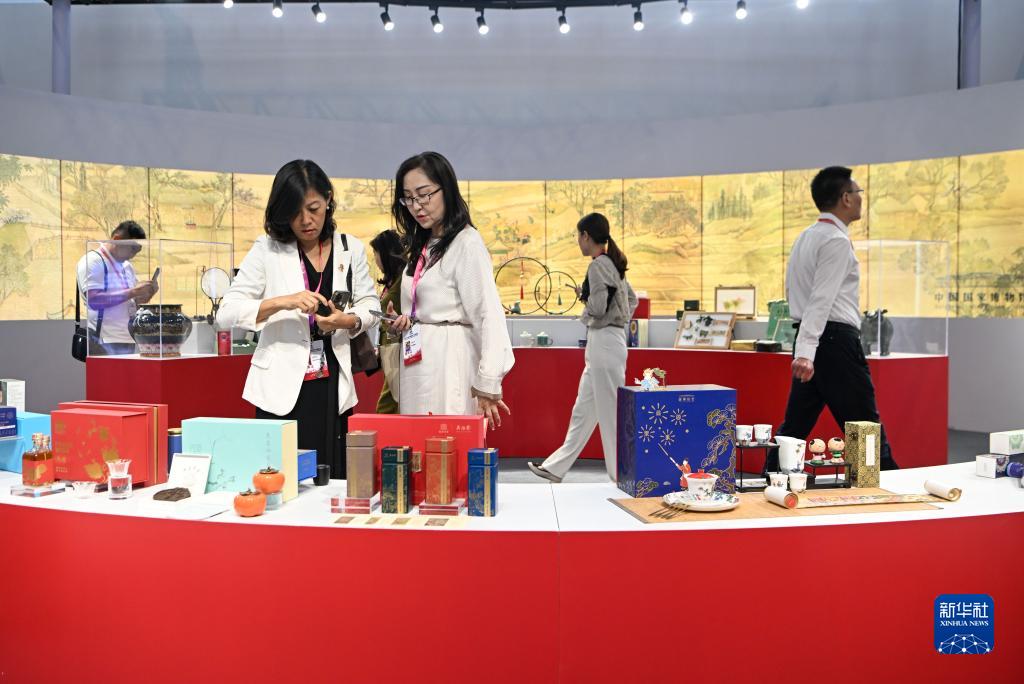 9月1日,參觀者在第十三屆中國旅游產業博覽會中國國家博物館展區挑選文創產品。