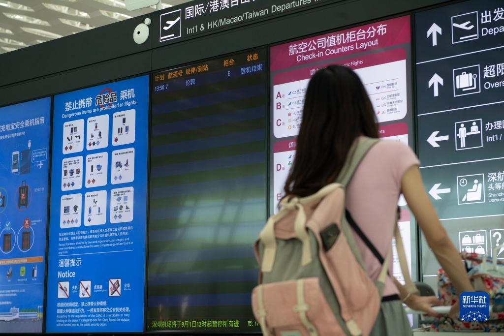 9月1日,在深圳寶安國際機場出發廳,旅客查看顯示屏。
