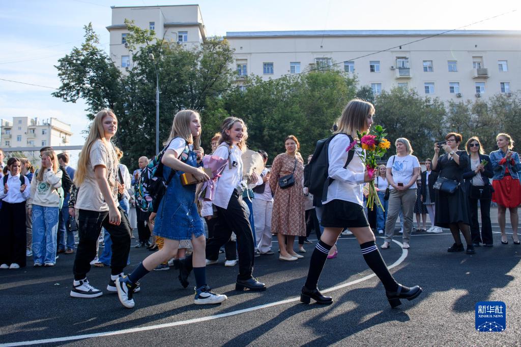 9月1日,在俄羅斯首都莫斯科,學生們參加開學典禮。