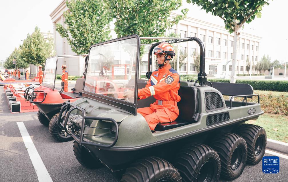 這是成果展展出的水域救援專業(yè)裝備——水陸兩用消防車(8月31日攝)。