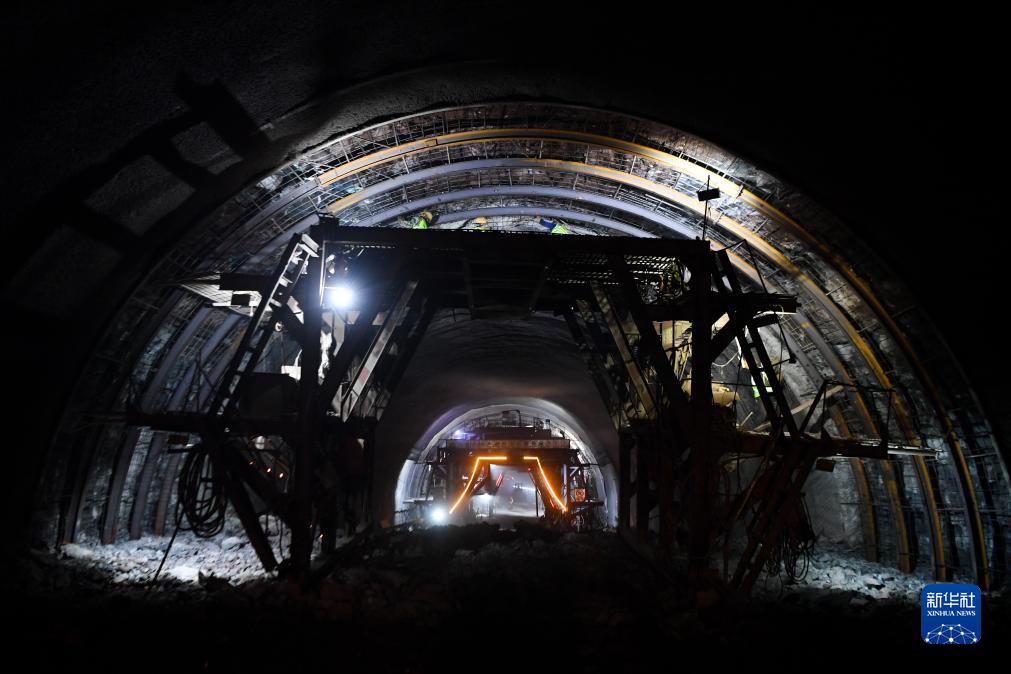 9月1日,施工人員在位于陜西省寶雞市麟游縣的麟法高速石臼山隧道內(nèi)施工。