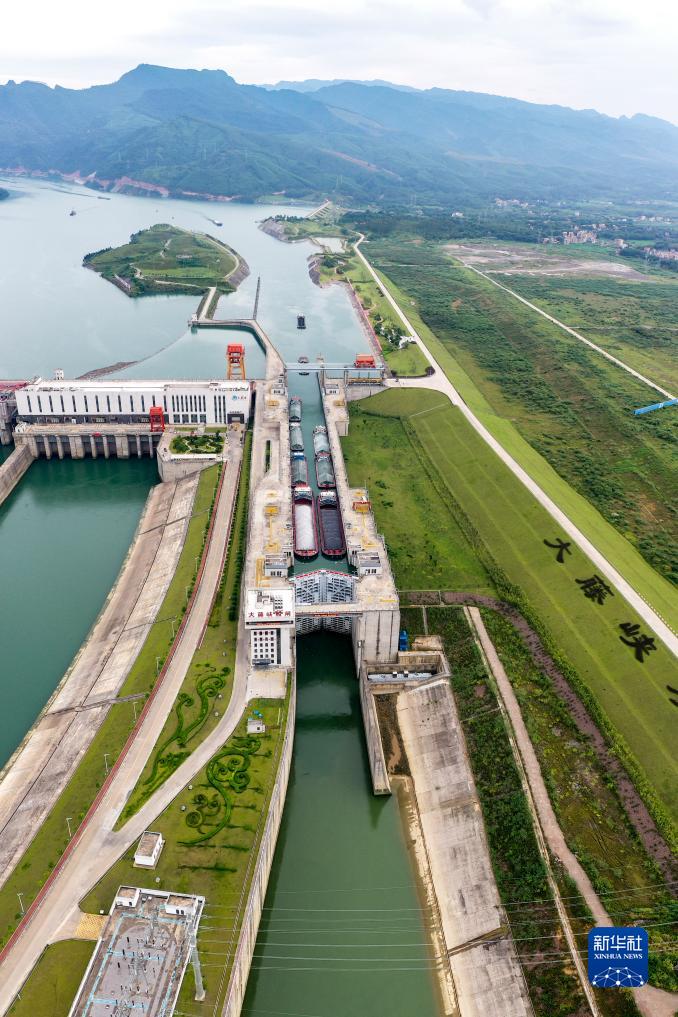 9月2日拍攝的廣西大藤峽水利樞紐船閘(無(wú)人機(jī)照片)。