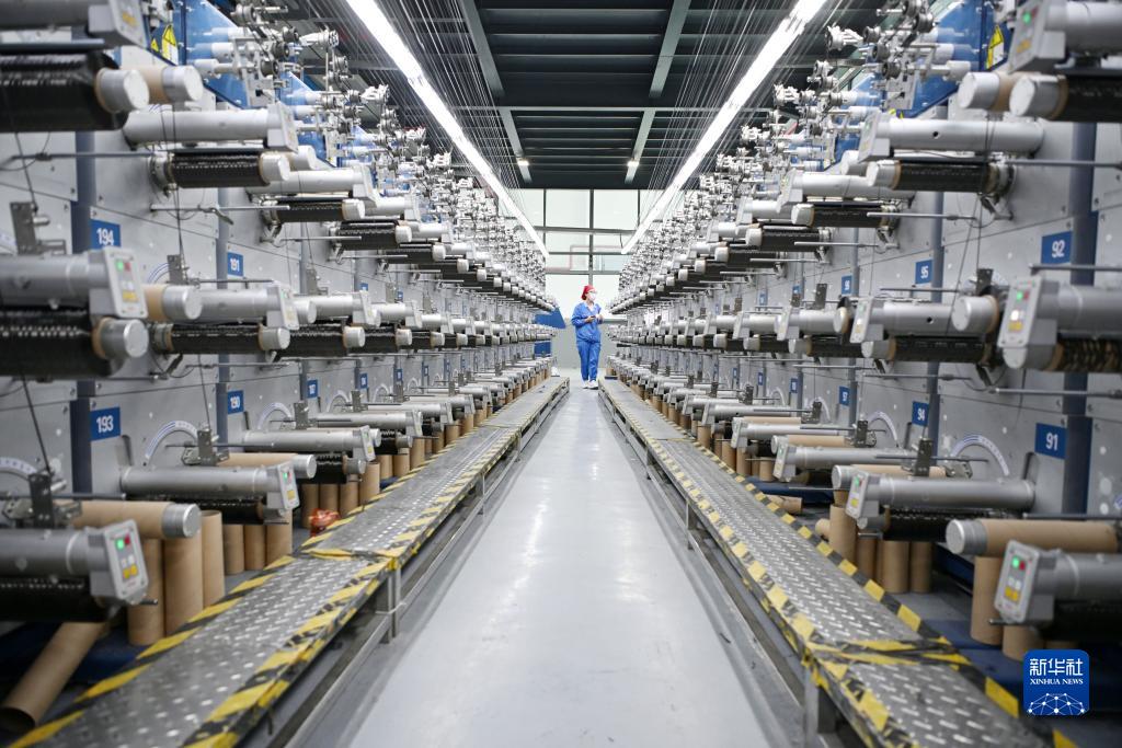 在中國建材集團(tuán)西寧萬噸碳纖維生產(chǎn)基地,工作人員檢查碳纖維生產(chǎn)線運(yùn)行情況(8月27日攝)。