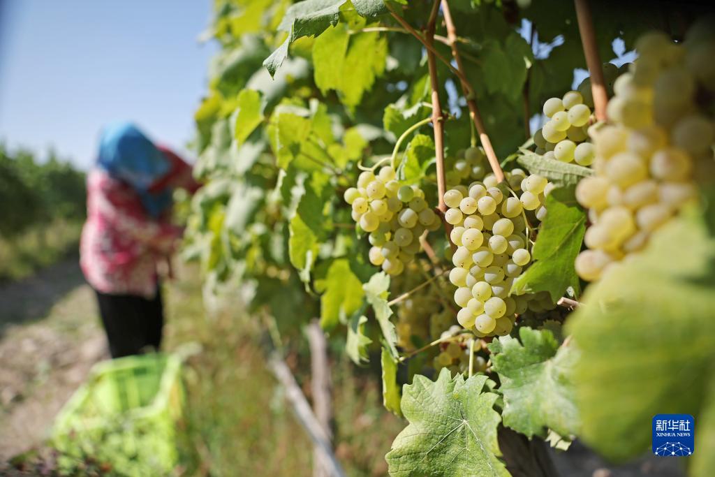 采摘工在銀川市西夏區(qū)志輝源石酒莊采摘釀酒葡萄(9月1日攝)。