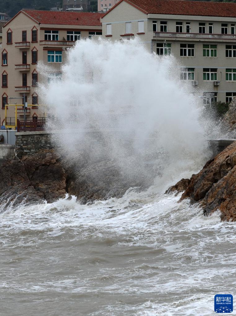 9月2日,浙江省溫嶺市石塘鎮金沙灘海域掀起巨大浪花。