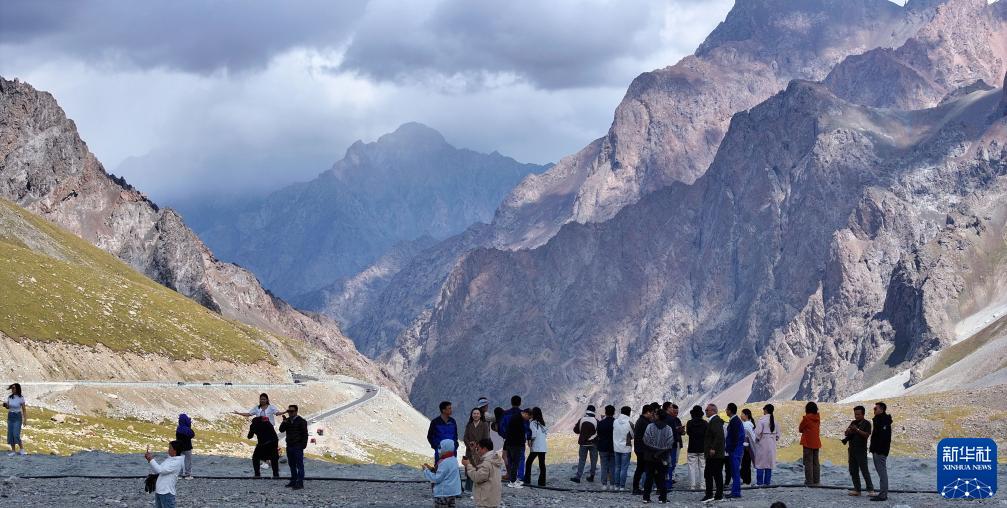 游客在海拔3390米的哈希勒根達坂游玩(8月23日攝,無人機照片)。