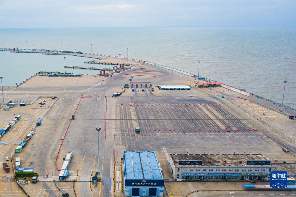 9月2日在海南省??谑行潞8叟臄z的待渡車場(無人機照片)。