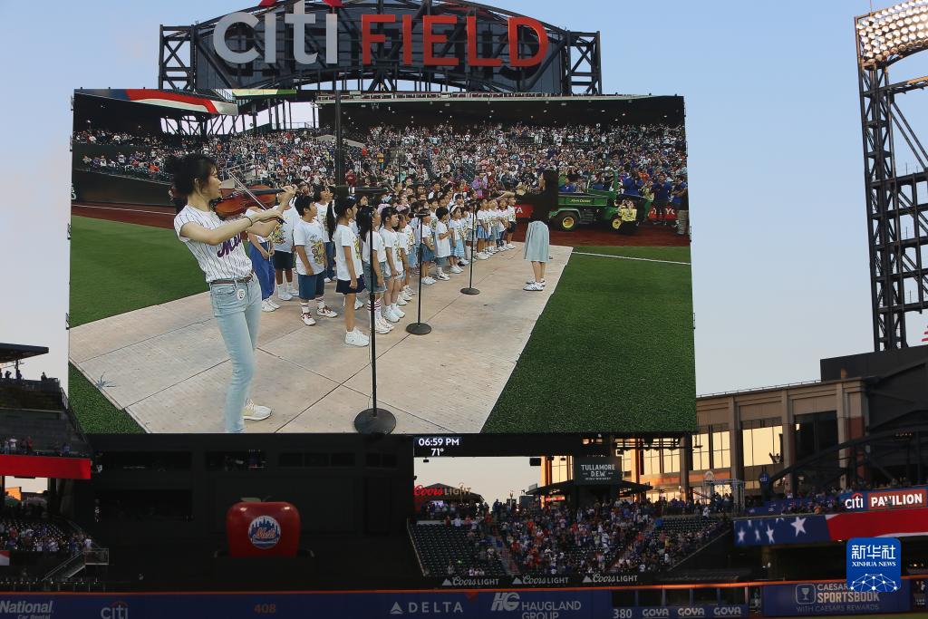 9月1日,在美國(guó)紐約大都會(huì)棒球隊(duì)主場(chǎng)花旗球場(chǎng),兒童合唱團(tuán)在“中華之夜”暨“你好!中國(guó)”旅游推廣品牌發(fā)布活動(dòng)結(jié)束后表演。