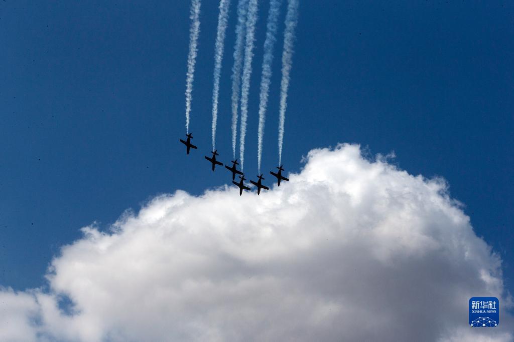 9月2日,在希臘塔納格拉空軍基地的雅典飛行周上,來自西班牙的飛行表演隊進行表演。