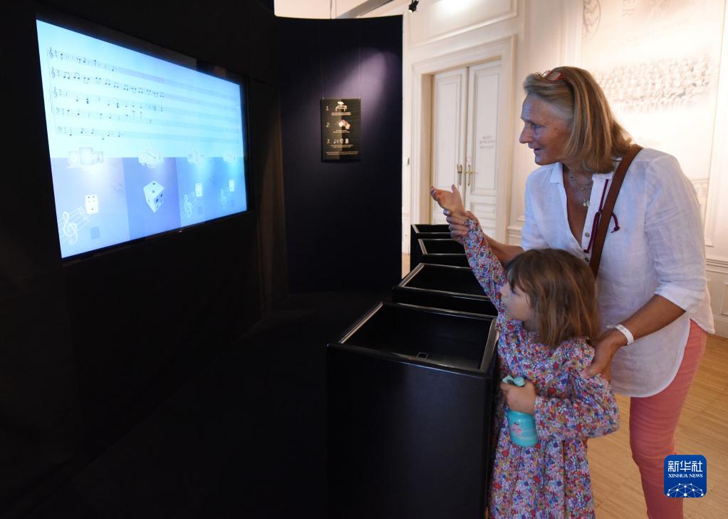 9月2日,在奧地利維也納“音樂之家”,觀眾通過擲骰子游戲的交互方式體驗樂曲創作。