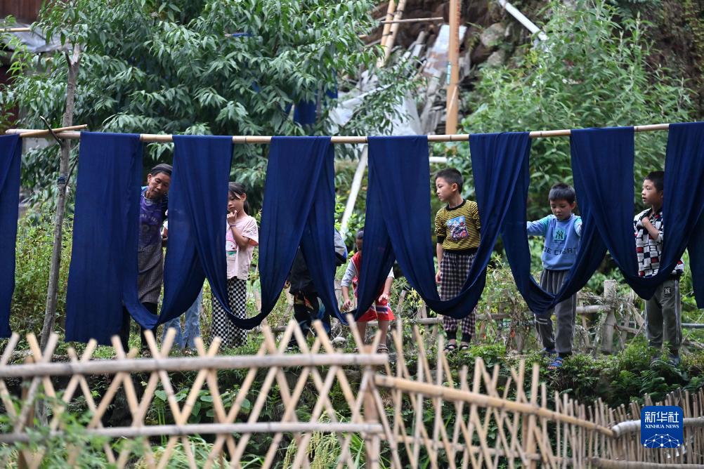 烏英苗寨的孩子們在觀看老人制作亮布(2022年9月7日攝)。新華社記者 黃孝邦 攝