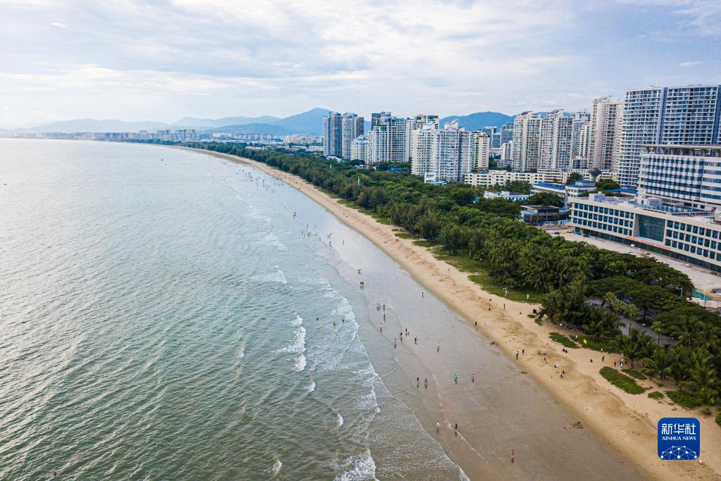 海南省三亞市三亞灣景色(無人機照片,8月30日攝)。三亞灣位于海南省三亞市主城區南部,海域面積75平方千米,是三亞市作為著名旅游目的地的重要資源依托。