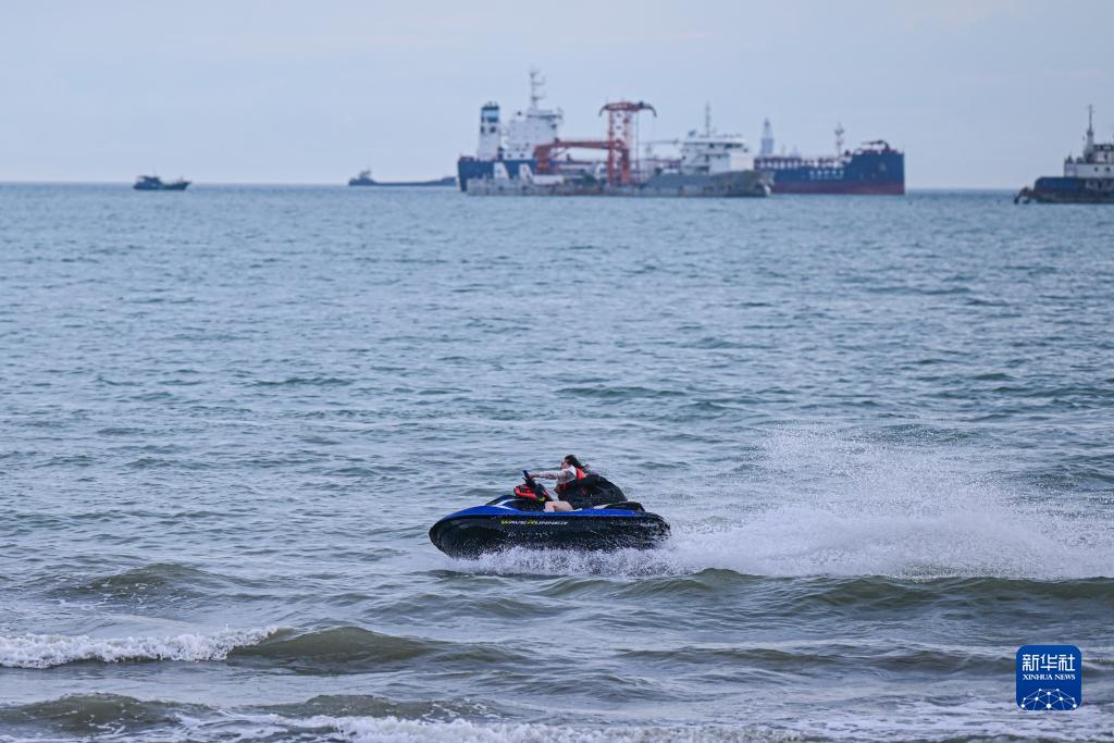 游客在海南省三亞市三亞灣體驗(yàn)水上項(xiàng)目(8月30日攝)。三亞灣位于海南省三亞市主城區(qū)南部,海域面積75平方千米,是三亞市作為著名旅游目的地的重要資源依托。