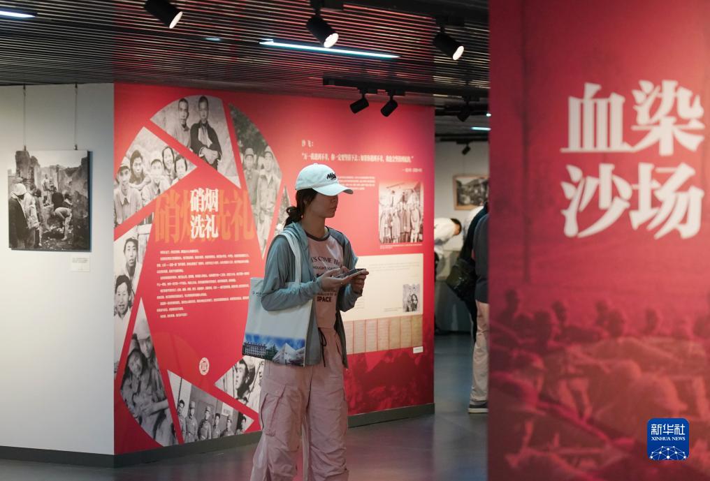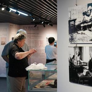 9月3日,參觀者在中國人民抗日戰(zhàn)爭紀(jì)念館觀看“烽煙號角——《晉察冀畫報(bào)》攝影文獻(xiàn)展”。