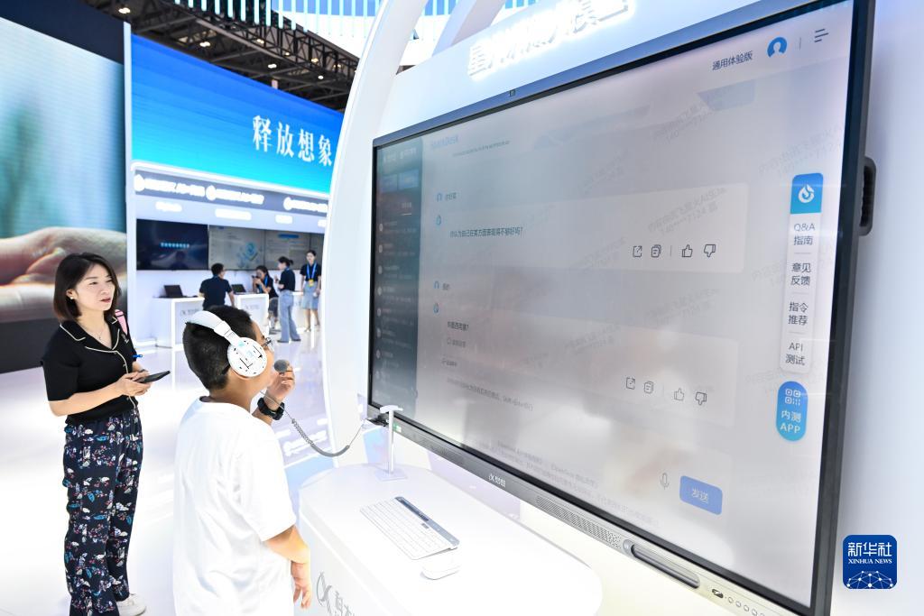 9月3日,小朋友在2023中國(guó)國(guó)際智能產(chǎn)業(yè)博覽會(huì)會(huì)場(chǎng)體驗(yàn)訊飛星火認(rèn)知大模型。