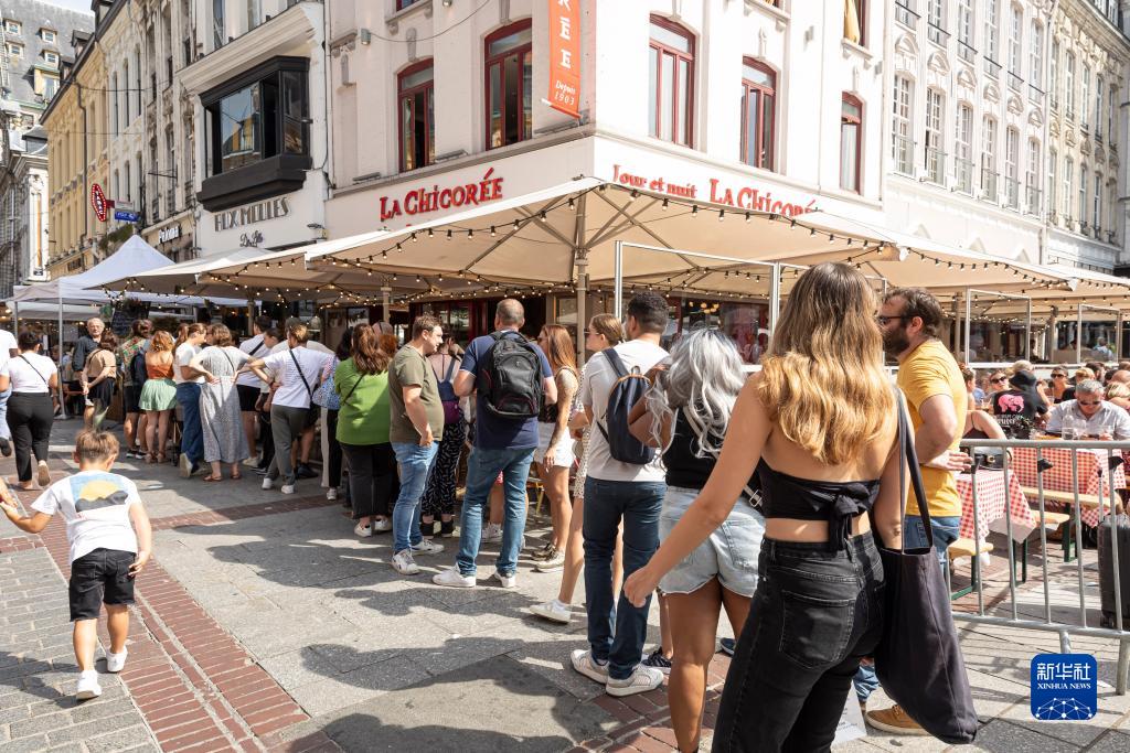9月3日,在法國里爾舊貨市場上,人們在一家供應(yīng)貽貝和薯條的餐廳外排隊等位。