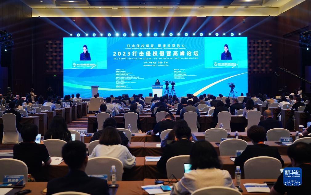 9月4日在國家會議中心拍攝的2023打擊侵權(quán)假冒高峰論壇現(xiàn)場。