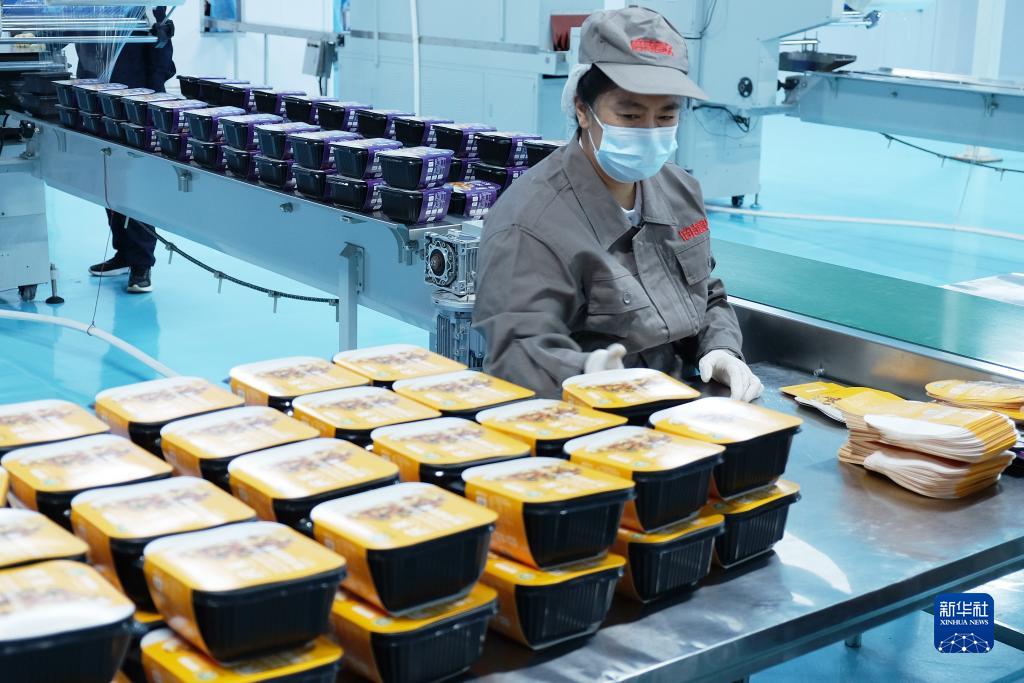 9月4日,在位于綏化市慶安縣的黑龍江倍特食品有限公司生產(chǎn)車間,工作人員在加工制作自熱米飯。