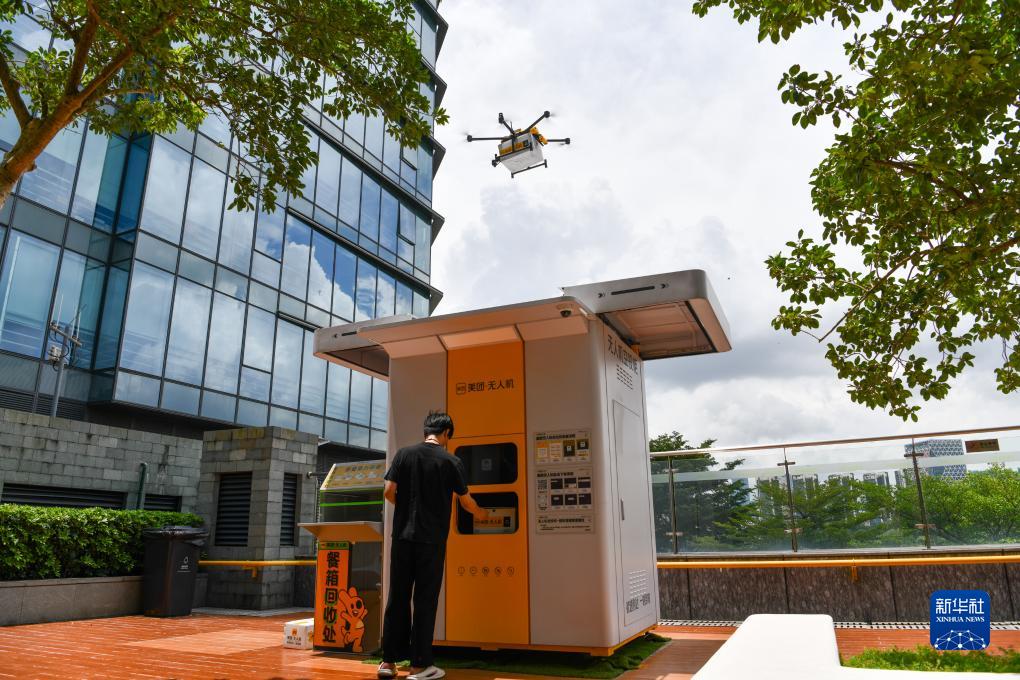 在廣東省深圳市,一些商圈、寫字樓上設有無人機空投柜,顧客在午間用餐高峰時段下單時,訂單可通過無人機進行配送,減少了顧客等待時間,彌補了餐飲高峰期運力不足。同時,無人機也可將訂單送往景區,解決傳統配送服務無法在景區內配送的問題。