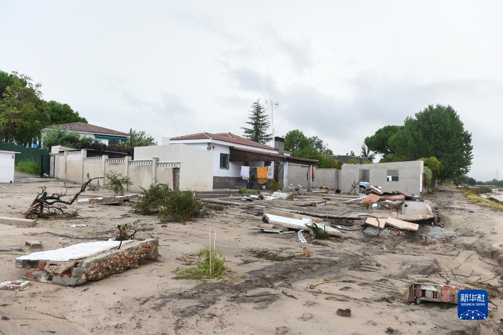 這是9月4日在西班牙馬德里比利亞曼塔鎮拍攝的洪水過后的民居。