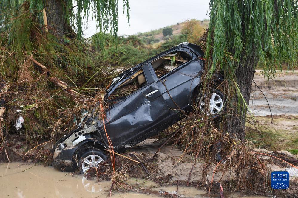 這是9月4日在西班牙馬德里比利亞曼塔鎮拍攝的被損毀的汽車。