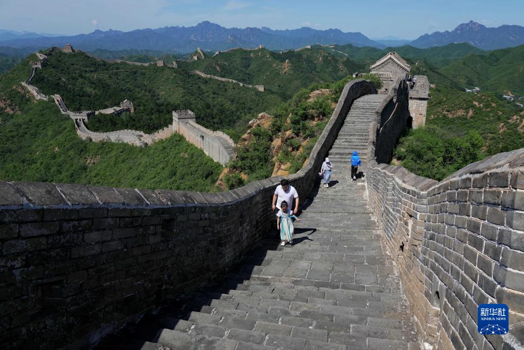 這是游客在金山嶺長城上游覽(9月1日攝)。
