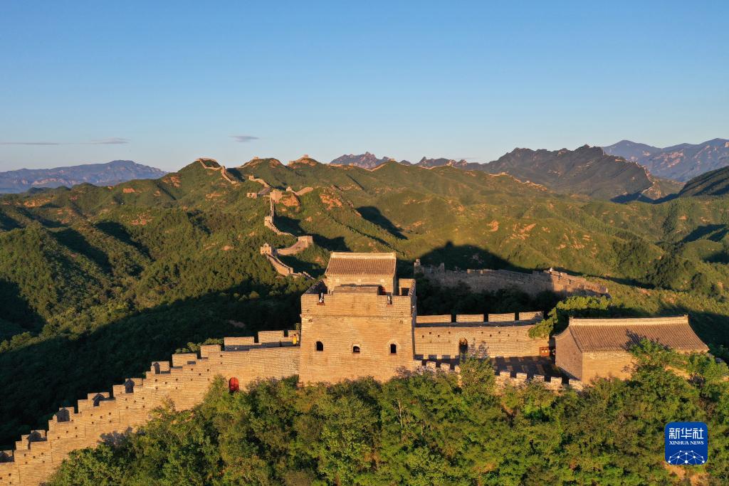 黃昏中的金山嶺長城將軍樓(8月31日攝,無人機照片)。