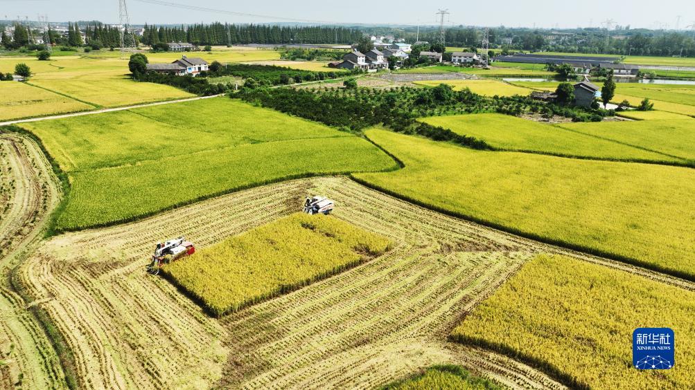 9月4日,湖北省枝江市五家畈農(nóng)機(jī)專業(yè)合作社的收割機(jī)手在搶收中稻。