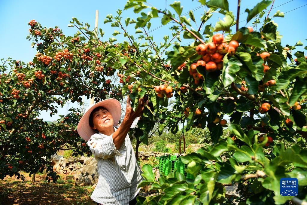 9月5日,山東省棗莊市山亭區(qū)水泉鎮(zhèn)柴山前村農(nóng)民在采摘山楂。