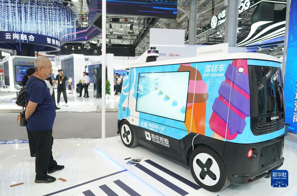 9月5日,觀眾在服貿會首鋼園區了解一款無人車。